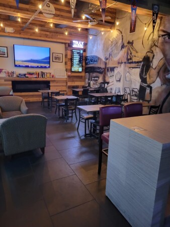 Modern pool hall with 21 tables & a sleek lounge vibe with couches, a fire pit & comfort food.